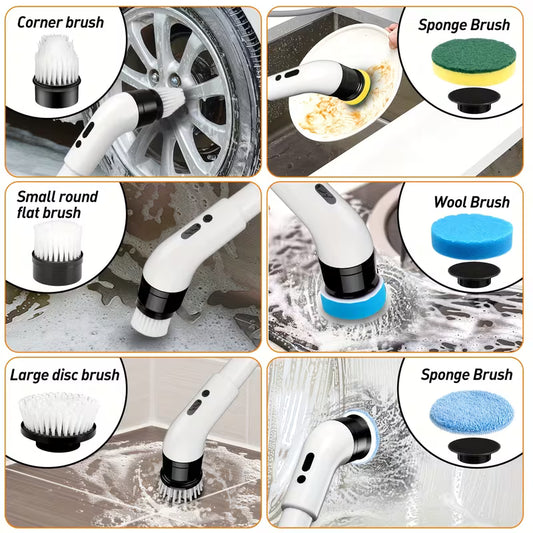 9‑in‑1 Cordless Electric Spin Scrubber, Dual Speed, Adjustable Long Handle | Bathroom, Tile, Kitchen & Car Cleaning Brush